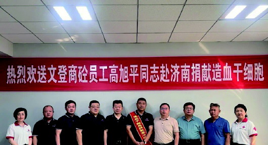 高旭平是文登商砼有限公司一名普通的仓库保管员,2020年7月采集血样加入到造血干细胞志愿者队伍。在欢送仪式上,高旭平告诉大家,他的此次捐献一开始有点曲折,第一次体检合格后,由于对方患者病情加重无法进行移植而一度停滞,自己当时还挺着急,一是为对方患者的身体担心,另一方面也怕错过了这样一个做好事的机会。现在自己的第二次体检也合格,患者也符合捐献的条件,能够为拯救他人生命尽一份力,感到非常荣幸和自豪,很期待这次赴济南的捐献,希望一切顺利,早日帮助到对方患者。