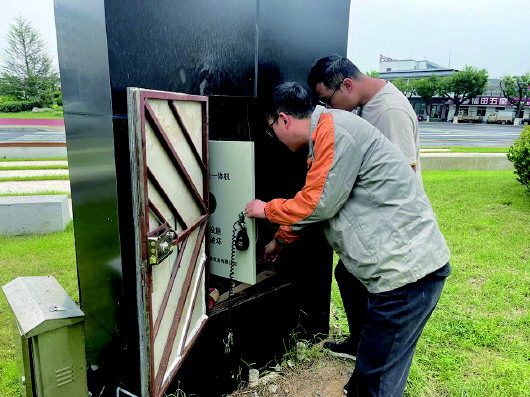 8月25日,区人防事务服务中心的工作人员联系辰阳电子的维修人员,冒雨来到瑞祥家园东拐角处的多媒体警报器,查找大屏幕显示不完整的原因。最终发现是警报器内部的单元显示模块有问题,及时更换了显示模板,大屏幕显示完整,不再出现模糊块的现象。