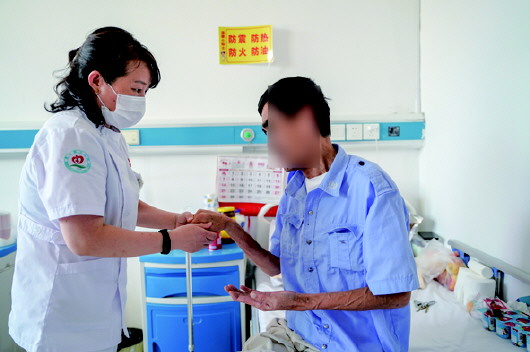 84岁的丛卿滋患有糖尿病,需要进行胰岛素注射治疗,入住时,老人不仅小便失禁,血糖不稳定,还需要依靠轮椅入院。经过血糖监测、规律饮食、规律注射胰岛素,通过助行器他已经能自己活动。原来评定自理能力为失能,现在为半自理。