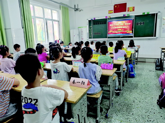 老师们在典礼上指导孩子们抓学习常规,教给孩子们如何养成良好的学习习惯,整个典礼热烈而庄重。 (任衍菊)