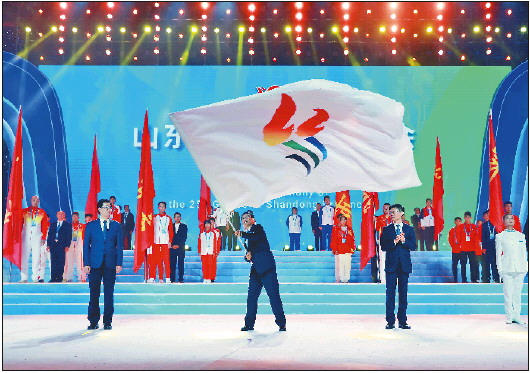 接过会旗,省运会进入“临沂时间”。 记者 刘涛 摄