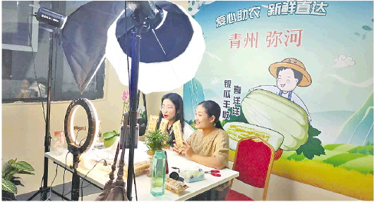 在该直播基地,像谭坊镇这样“一村一品、一镇一号”专属直播间有18个,30余个直播团队,直播人员都是来自各个乡镇街道、机关单位的公职人员。今年青州市选拔出62名公职人员加入直播团队,专职开展公益助农直播带货,将特色文旅商品和优质农产品推向全国。 记者 秦国玲 摄影报道