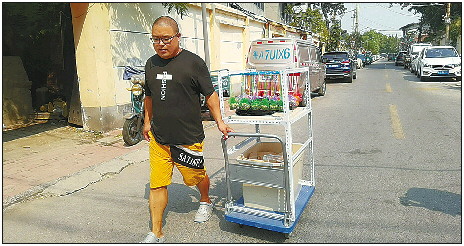 罗继鹏拉着他卖货的小推车走在马路上,他要继续为父亲筹集手术费。