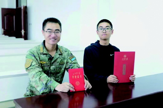李朝宇告诉记者,录取通知书到达的那天,他和父亲专门拍了张照片纪念:他举着自己的录取通知书,父亲李春昌则举着自己的毕业证书,一样的“山大红”。