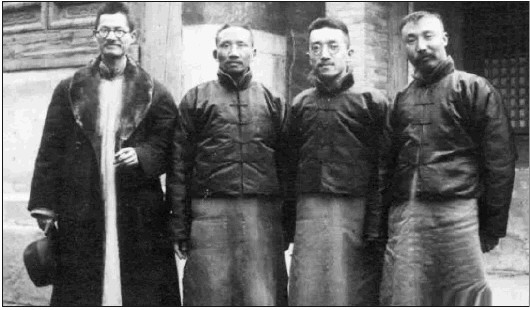 ▲胡适(右二)曾与蒋梦麟(左一)、蔡元培(左二)等同来济南。
