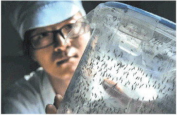在广东,便有家全球最大的“蚊子工厂”——广州威佰昆生物科技有限公司。这里培育着“以蚊治蚊”的科技蚊,日产量可达500万只。这些蚊子体内都被注射了沃尔巴克氏体菌型,在交配后会导致雌蚊绝育。这些被放到野外的雄蚊不会叮咬人类,只会与野外的白纹伊蚊进行交配。放出的蚊子7天左右就会消亡,对环境不会造成太大影响。