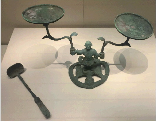 当刘桂新把准备给小孩玩的那个小人灯具拿出来,俩人霎时都被镇住。左看右看之后,对他说:“这是古代的青铜文物,有重要的考古研究价值,我们要带走,并向上级报告。”那时候,县级政府大都没博物馆,发现了文物,都要求上报上交。刘桂新很爽快,说:“既然是国家文物,俺就交国家。”接着,又拿出那个长柄的铜勺,问要不要。几个人一看,断定与人形灯是一套的。同时认为,这组器物可能是实用器物,比墓葬陪葬品更有研究价值,就一起拿走了。