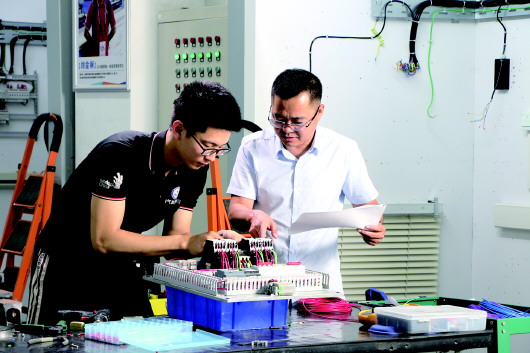 目前,学院共有十二个专业完全实施一体化教学,其中钳加工(机械设备维修)、机电一体化技术、计算机应用与维修成为人社部课改专业,汽车维修成为省人社厅课改专业;先后完成智能制造技术等7个专业群、工业机器人应用与维护专业等33个专业建设方案和工业机械自动化装调等78个人才培养方案,制定了工业互联网应用等46个教学标准和电气自动化设备安装与维修等104套核心课程标准,课程建设体系持续优化,有力促进了人才培养模式、教学内容、教学环境和教学模式“四个创新”。