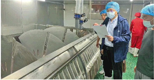 青岛中院法官对被诉侵犯实用新型专利权的预冷机等设备进行现场证据保全及技术勘验。 青岛中院供图
