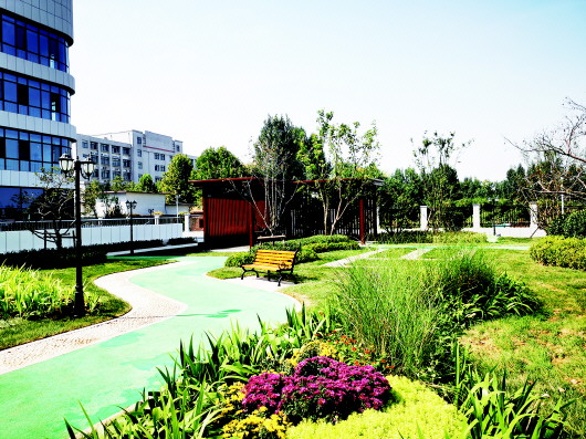 位于院区最北侧的康苑与山东师范大学加州世界城实验小学一路之隔,居住在这里的长者,每天伴随孩子朗朗的读书声,用阳光和活力开始一天的康养生活,对于这一特别的安排,闵善康复护理院的吴主任说道:”人们提起养老机构的护理院,多会联想到沉寂压抑的气氛,忙碌的医护人员和相对拥挤的床位,我们希望入住这里的长者能提高生命质量,享受快乐的晚年生活,康苑一楼建设有全科门诊、中医门诊、健康管理中心、中医理疗中心、康复训练中心,更特邀国内外神经、精神科专家作为设计建设顾问,在5层、6层打造超3000平方米的认知症照护中心,内设‘记忆之家’‘氧气森林’‘ADL训练室’‘五感疗愈花园’等,通过怀旧疗法、园艺疗法、记忆训练等,针对老人身心特点设计特殊的空间环境。”