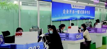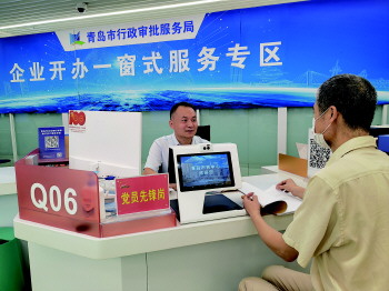 市民在青岛市民中心企业开办一窗式服务专区办理业务。