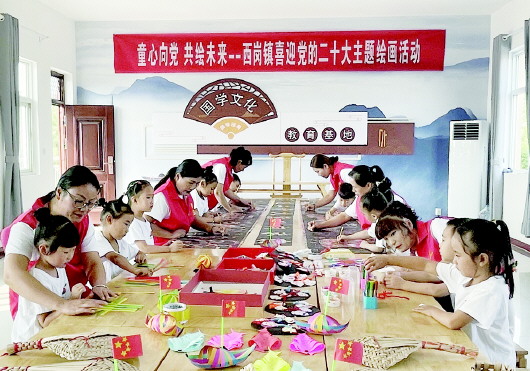 9月28日,西岗镇中心幼儿园西园组织部分儿童、新时代文明实践、青年志愿者在新时代文明实践所开展“童心向党 共绘未来”喜迎党的二十大主题绘画活动。孩子们和志愿者一起绘制他们心中祖国的壮丽河山,用绘画的方式表达了对党的感恩、对祖国浓浓的热爱之情。 (满莹)