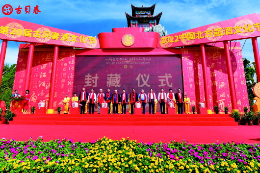 向历史致敬就是为未来壮行。回首古贝春70年发展史,最自豪的感受就是坚持匠心、传承经典。作为山东省非物质文化遗产,古贝春酒传统酿造技艺发轫于运河,成熟于武城,发展于古贝春。千百年来,“混蒸混烧” “分层跑窖”“多轮发酵”等古老工艺在古贝春延续,并在国际先进的检测手段加持下焕发青春。为致敬经典、封藏承诺,举行了隆重的封坛仪式。