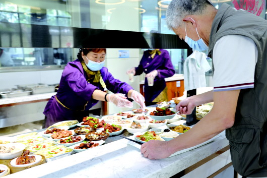 “一个荤菜,两个素菜,一个玉米饼,一份粥,8块钱,你说实惠不实惠吧,要是自己在家搞这三个菜,8块钱搞不下来。”10月4日中午,王先生来到市民社区食堂(鹿鸣店)就餐,夸赞社区食堂饭菜可口、价格实惠。
