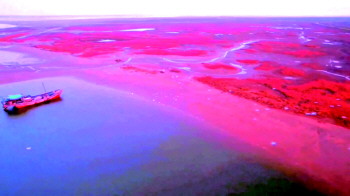 记者了解到,形成“红海滩”的其实是一种名叫碱蓬草的植物。这种植物四月吐芽,初为嫩红淡绿,经过海水荡涤越荡越红,渐次转深,由红变紫。一簇簇,一蓬蓬,在盐碱卤渍里,年复一年茁壮成长。大片大片的碱蓬草长在一起就汇聚成了红色的海洋,每年九至十月,颜色会随着天气愈发鲜艳夺目。