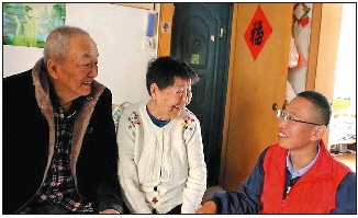10月10日,记者来到郝止善夫妇家中时,吕传伟正搀扶着黄淑珍从卧室来到客厅,照顾老人坐下后,又熟练地倒了杯水递到了老人手中,才讲起了自己与老两口的故事。