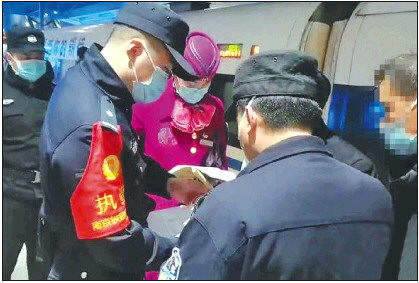 吸烟导致列车缓行的乘客接受铁路警方调查。资料片