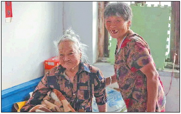 葛允香(右)在照顾婆婆。