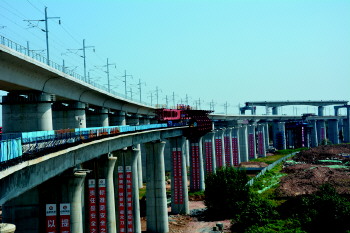 今年4月初,山东省首台套上行自行式移动模架在山东海德重工有限公司成功下线。7月正式应用于济南枢纽优化提升相关工程的施工,相比传统施工模式,该移动模架的应用在降低成本、缩短工期、增强安全性等方面取得了创新突破,填补了山东省在高铁施工的空白。