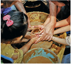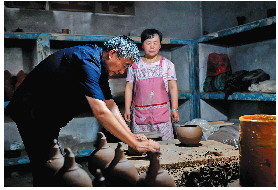 手把手教孩子们制陶,这项技艺需要社会共同呵护和传承。