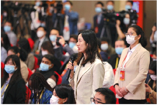 10月20日,二十大新闻中心举行记者招待会。中央对外联络部副部长沈蓓莉,外交部党委委员、副部长马朝旭围绕“习近平外交思想指引中国特色大国外交开拓前行”主题与记者交流。这是记者在分会场提问。 新华社发