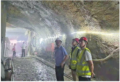2021年,张学家(左一)在青岛地铁4号线隧道内检查施工安全质量。
