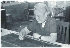冯忠莲在临摹古画。