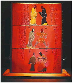 ▲孔子像漆衣镜屏(图片来源:江西省文物考古研究院)