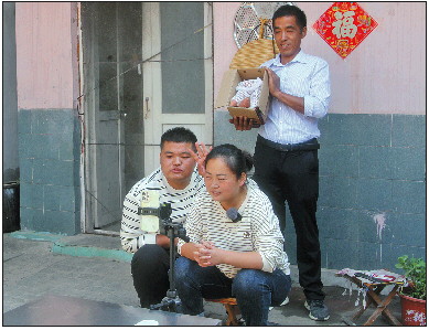 在济阳区济北街道李旺村一个农家小院里,摆放着一个支架、一部手机,一位年轻农妇正对着手机向粉丝们介绍烤蜜薯的制作流程。旁边身材高大的小伙子是她的丈夫李帅,后面手拿产品的是小伙子的父亲李德全。