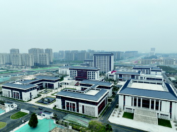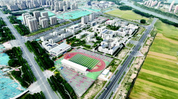 位于度假区的聊城一中新校区航拍大景。