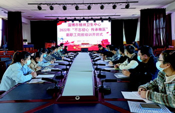 为使新员工尽快熟悉和适应医院文化、管理制度和行为规范,加强认同感和归属感,快速融入医院工作氛围,10月17日上午,淄博市精神卫生中心在门诊楼五楼会议室举行“不忘初心 传承精医”新职工岗前培训开班式,医院领导班子成员、相关行政职能部门负责人以及新入职的员工等共计25人参加了仪式,仪式由人事科负责人顾龙主持。