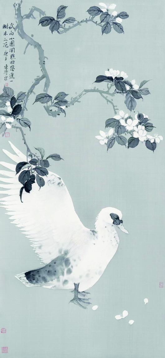 陈涛的作品工写兼备、雅俗共享,既有工笔的细致灵动,又有写意的豪迈奔放。这得益于,他一方面继承了恽寿平、华新罗等人的古法风韵,笔墨绵密细腻,赋色清新淡雅,形象规致逼真,画面娟秀唯美,颇具宋人花鸟画风采。另一方面,他又吸收了吴昌硕、齐白石、于希宁等大家的写意风格,笔触豪迈洒脱,墨彩奇肆飞扬,风格质朴自然,画面意蕴十足且极具生活情趣,绽放出勃勃的生机与鲜活的生命力。在他的笔下,那些刻画传神、惟妙惟肖,呈现出无限魅力的花草鸟兽,不仅是他与自然界共情的产物,更是他与一代代国画大师传承、沟通的桥梁。