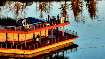 在太白湖景区,如茵绿地在和煦阳光的照射下,镀上了一层金色,与摇曳的芦苇和清幽的湖水,共同构成秋日画图,令人陶醉。在不远处的景区步道,游客们悠闲漫步,自在观景。