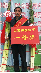 “我种的品种是‘大梧桐’,在20多亩的葱地里找了两天,才挑出来的。”拔得头筹并荣获种植大户的称号,苗发勇颇感欣慰。更让他欣慰的,今年章丘大葱市场行情依然走俏。按目前一斤6-8元的市价,20多亩葱地、数万斤的产量,苗发勇一年辛苦劳作,收获颇丰。