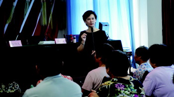 “家是讲爱的地方,不是说理的地方。”徐爽在讲述过程中经常联系学员的实际生活,现身说法。“我儿子出生时,我和丈夫想要给孩子留很多钱,想要给孩子买房。但最后发现,能够代代传下去的,只有德。”徐爽站在村民们中间,边走边娓娓道来。
