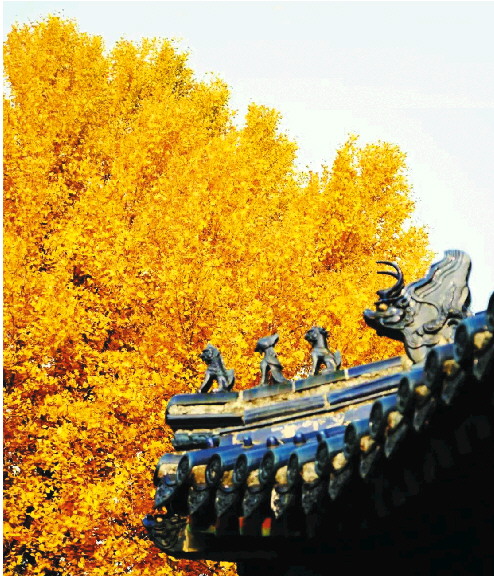 赶到公园去看树,这时候,银杏叶的金黄正当季。银杏是一种古老的树种,也是一种寿命长久的树木。这样的老银杏,很多生长在寺庙。在北京,最古老的银杏树在潭柘寺,有一千三百年的生命,看尽了春秋演义、朝代更迭和帝王将相的灰飞烟灭,那种一树通体彻底的金黄,真的让人叹为观止。