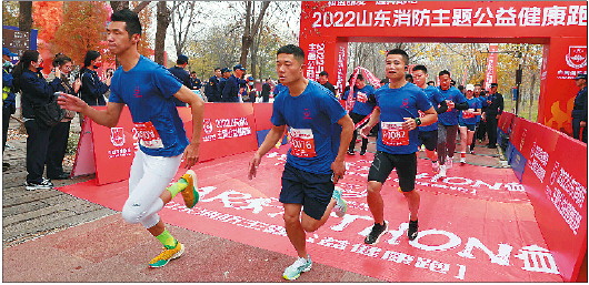11月10日上午9时30分,2022山东消防主题公益健康跑在济南济西国家湿地公园鸣枪起跑。 记者 王鑫 摄