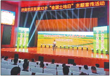 济南市庆祝第32个“全国土地日”宣传活动在济阳区举办,活动主题是“节约集约用地,严守耕地红线”。