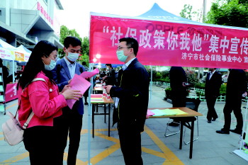 济宁市社保中心开展社保政策宣传。