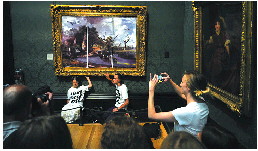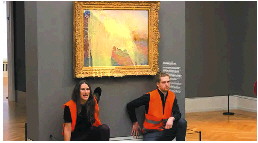 10月23日,德国环保组织“最后一代”的成员进入德国巴贝里尼博物馆,在莫奈的名画《干草堆》上泼土豆泥,以抗议化石燃料开采。11月5日,在西班牙首都马德里的普拉多博物馆,环保组织“未来蔬菜”的两名成员用胶水将手粘在西班牙艺术家戈雅的两幅名画的框架上。他们还在墙上写下了“+1.5℃”字样,意指应对气候变化的《巴黎协定》把全球升温控制在1.5℃之内的长远目标。