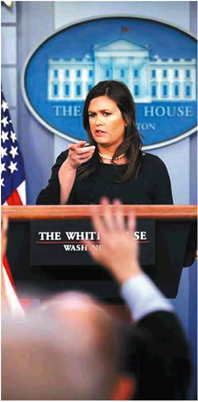 担任白宫新闻秘书时的萨拉·桑德斯(资料片)。 新华社发