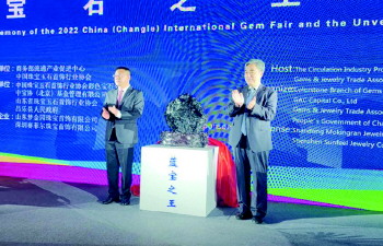 本报11月11日讯(记者 张梓璐)11月10日,2022中国(昌乐)国际宝石博览会开幕式在山东昌乐隆重举办,本届中国(昌乐)国际宝石博览会将持续至13日。本届博览会由商务部流通产业促进中心、中国珠宝玉石首饰行业协会主办,中国珠宝玉石首饰行业协会彩色宝石分会、中宝协(北京)基金管理有限公司、山东省珠宝玉石首饰行业协会、昌乐县人民政府承办,主题为“中国蓝·中国梦”。