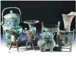 邵家棚遗址墓葬出土的铜礼器组合。新华社发(国家文物局提供)