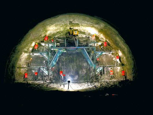 玉皇山隧道全长6058米,其中烟台境内3673米,是全省目前在建最长的铁路隧道。全隧最大埋深378米,施工技术难度大、安全风险高、施工组织复杂,是莱荣高铁的重难点控制性工程。该项目于2021年2月进洞施工,建设单位科学合理组织施工,持续加强科研攻关,创新研发“隧道开挖和钢拱架安装一体化台车”。隧道施工历时652天,比预定工期提前45天贯通。