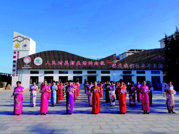 曲家庄村新时代文明实践广场上,百余名旗袍爱好者身着色彩绚丽的旗袍进行表演