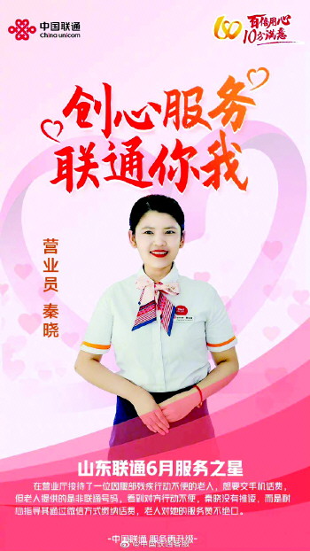 “在工作中,我深知要把工作做好,把事情做成功,就必须把自己全身心的投入在工作中,用心服务客户,真诚对待客户。”日照联通烟台路营业厅营业员秦晓这么说的,也是这么做的。