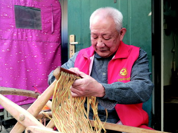 “咱这都是多年的老邻居了,你还客气啥!”说话间,沙俊江从储藏室里找出一盘扎带,取出钩针,小板凳上一坐,就忙活了起来。