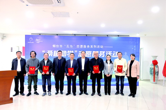 11月22日上午,在烟台市“五为”志愿服务系列活动之“桑榆助学”志愿服务活动启动现场,来自烟台市诗词学会、烟台市书法家协会的五名志愿者受聘为“桑榆诗词讲堂”讲师,他们将带领社区老人诗墨双修,共同感受传统文化之美。