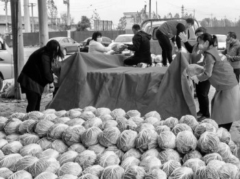 11月20日凌晨3点,志愿者王黎黎的丈夫肖文涛已到达蔬菜市场,与志愿者张城远一起收购爱心蔬菜。初冬的凌晨3点,凉气逼人。白菜、甘蓝、莴苣……志愿者站在寒风中精心挑选每一种蔬菜,一心帮助困难群众的初衷,让他们无畏寒冷。