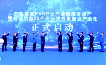 东岳集团相关负责人告诉记者,此次PVDF全产业链重点工程及2万吨TFE等强链补链项目集中投产不仅在进一步拉动PVDF全产业链运行,满足市场对锂电池级PVDF等高性能含氟聚合物产品需求和加强市场保障的同时,更是优化了东岳集团产业结构,使东岳集团氟硅膜氢产业链在延链、强链和补链上有着特别深远的现实意义。